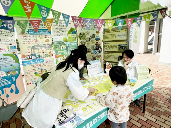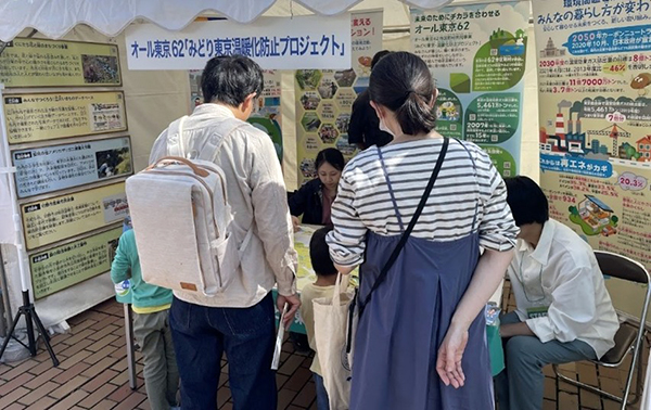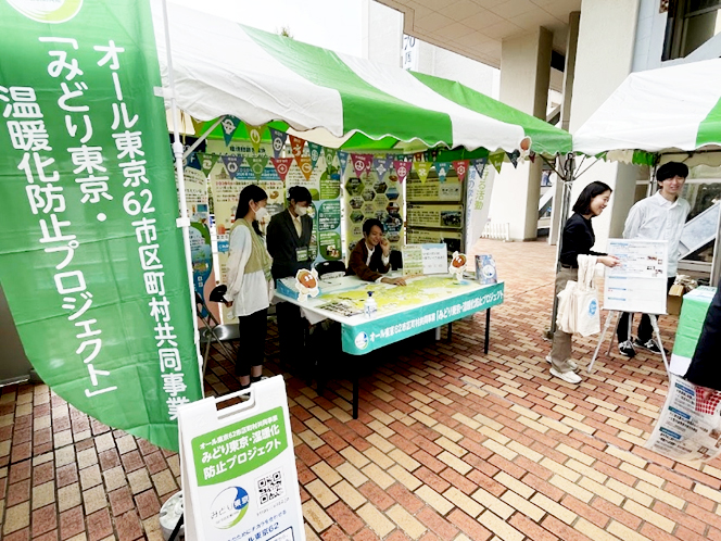 オール東京62市区町村共同事業「みどり東京・温暖化防止プロジェクト」では、東京62市区町村等が主催するイベント等を通じて、オール東京62共同事業のPR及び普及啓発展示を行っています。