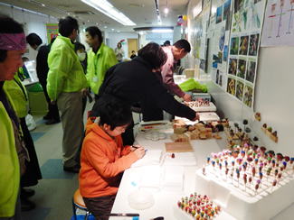 自然工作は、環境フェアなどでも実施している同会お得意のプログラムの一つだ。年明け3月に開催される「くらしフェスタ」の出展でも、緑のカーテンのPRとともに柱となる活動の一つとして位置づけられている。この日は、フリーマーケット当日の感想とともに、今後の方向性についての問題提起と議論が交わされた。