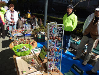 フリーマーケットでは、ドングリやトチの実、ヒマラヤスギぼっくり、ムクロジ、オニグルミなどの自然素材で作った工作品の販売によって3,970円の売り上げを得たとの報告がされた。1点当たり10円~という価格設定だから、なかなかの盛況だった。工作を得意とする中村会長の木の実のストラップはクオリティーも高く、人気も高かったという。