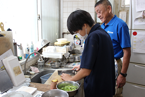 食べやすい大きさに野菜や果物をカット。慣れない手つきに見ている側はちょっと緊張
