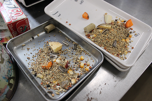 ここで最も重要なのが、エサを与えたあとにじっと観察すること。与えたエサをきちんと食べているか、特に新たに園に迎い入れた個体には寄生虫や病気がないか、目視で確認します。