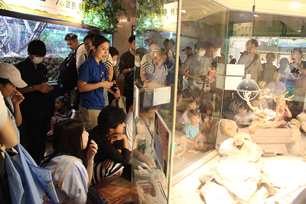 足立区が直営していた一時は6万人前後まで落ち込んだといいますが、元渕江(もとふちえ)公園と共に運営が指定管理となった2014年4月からイベントや企画展示の見直しを進め、徐々に人が戻っていきました。新型コロナウイルス感染症の流行前は来園者の大半を親子が占めていましたが、収束後、SNS(ソーシャルネットワーキング)での発信に力を入れると、20~30代の生き物好きにすそ野が広がったといいます。