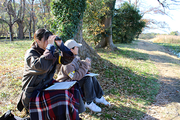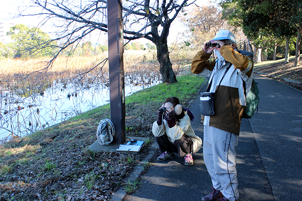 冬の観察に備えて、防寒対策ばっちりで、自前や受付で借りた双眼鏡を手に35のそれぞれの調査地点に向かいます。
