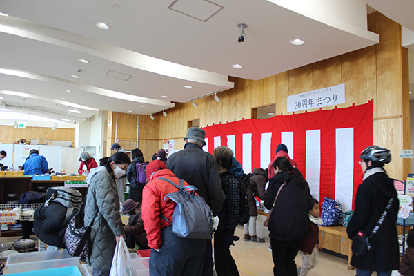 板橋区立リサイクルプラザは、びん・缶を選別・圧縮して資源化する「処理ゾーン」と、ごみ減量・リサイクルに関する各種イベント、不用品の販売を行う「プラザゾーン」の2つの施設で構成し、区民の暮らしを支え続けて20周年を迎えました。利用者や区民への感謝を込めて、さらにごみ減量や3Rを知ってもらおうと周年まつりを企画しました。板橋区の坂本健区長も駆けつけ、これからも区民に寄り添った施設運営を目指す旨を語られました。