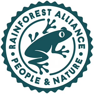 カエルのマークが印象的な「レインフォレスト・アライアンス認証」は、動物が暮らす森を壊さず、農場で働く人たちが安全に働きやすい環境で育てられた証です。厳しい基準要件を満たす認証農園で生産した作物が製品に使用されていることを示し、コーヒーやチョコレートなどのパッケージで見つけることができます。